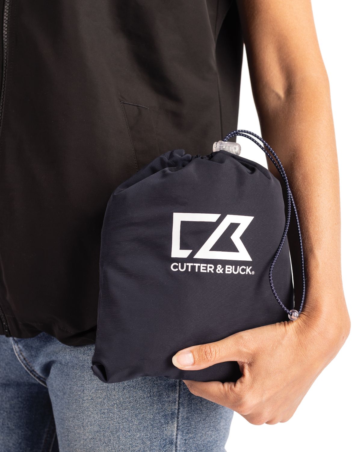 - Adjustable elastic drawcord at hem